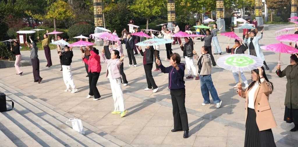 课堂上,王蕾老师紧扣群众学习特点,手把手拆解基础动作、耐心指导节奏韵律,学员们热情高涨、认真跟学,现场一派热闹景象。