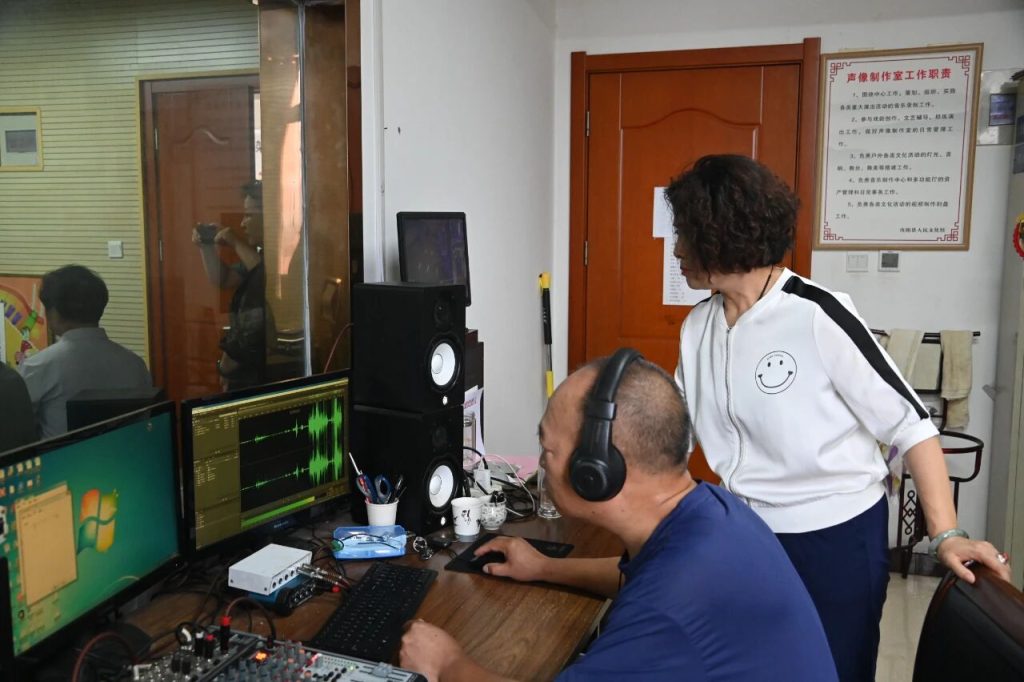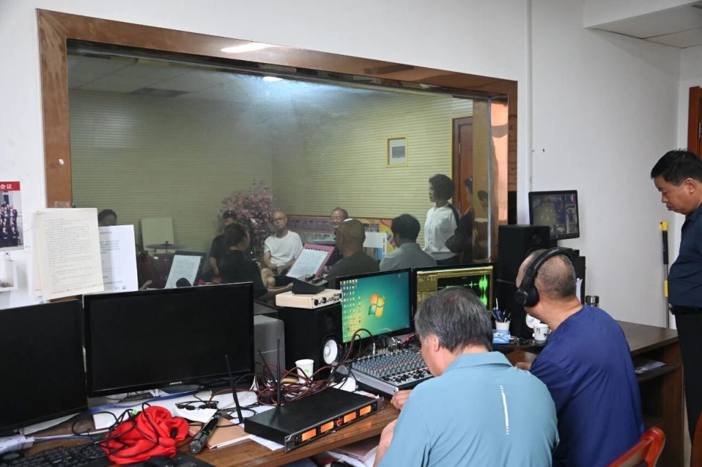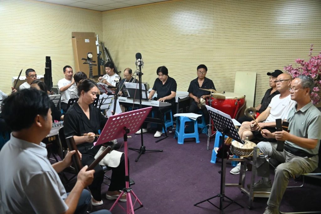 一旁的乐队成员默契配合,板胡、梆子等乐器奏响悠扬旋律,为演唱伴奏添彩,与演员的唱腔相得益彰。文化馆工作人员全程参与录制与审核,从唱腔、动作到乐队配合,细致指导,力求让节目既保留经典韵味,又贴近群众审美。