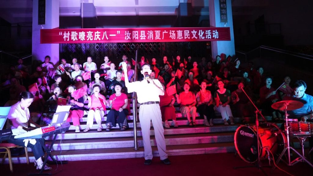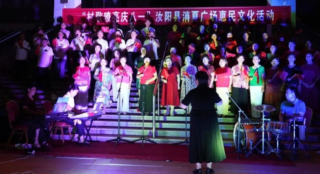 八一建军节来临之际,汝阳县人民文化馆组织100余名文化志愿者,在广场开展“庆八一、消夏广场群众惠民文化活动”,用嘹亮歌声与悠扬乐声致敬军人,丰富群众文化生活。