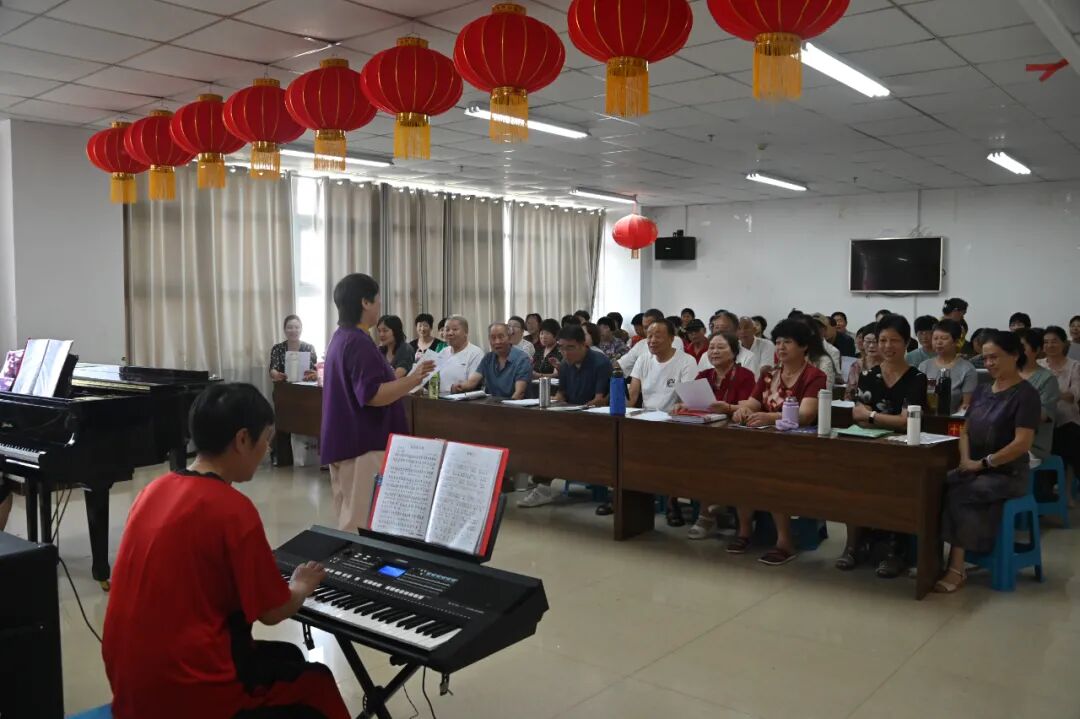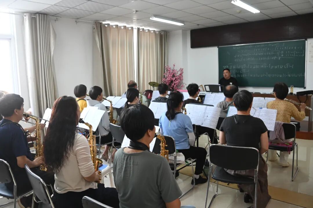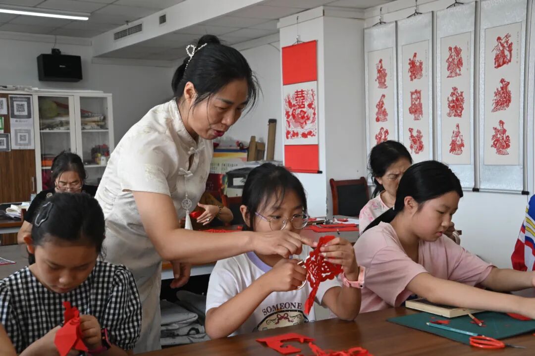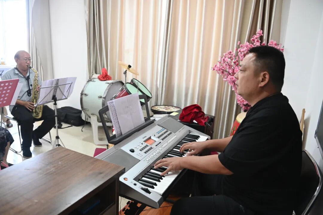 管乐教室里,乐器合奏声整齐悠扬;走秀课上,学员们踩着节拍练习台步,展现自信风采;声乐课上,大家在老师带领下练习发声,歌声清脆动人;剪纸课上,红纸在学员手中变成一幅幅精美作品,充满传统韵味。