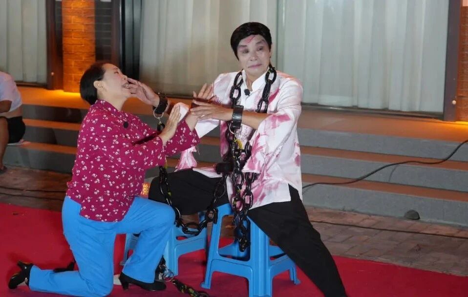 现场有位80多岁的老大爷,全程专注观看,当看到李玉和在刑场上不屈不挠的片段时,他满眼含泪,或许是这段剧情勾起了他对过往岁月的记忆,也让在场众人更深刻地感受到革命先辈的英勇无畏