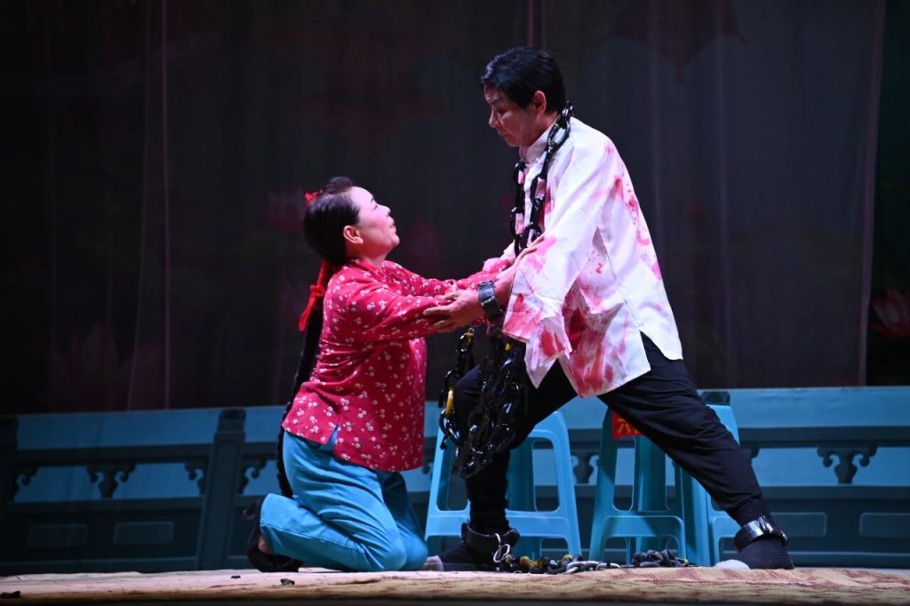 当豫剧《红灯记》”刑场”选段响起时,80岁的李大爷紧握座椅扶手,看着李玉和高唱国际歌走向刑场的演绎,泪水止不住地滑落。这出由汝阳县人民文化馆自乐团队带来的经典剧目,以铿锵唱腔和震撼表演再现了革命先烈的铮铮铁骨,让在场观众仿佛穿越回那个血与火的年代。