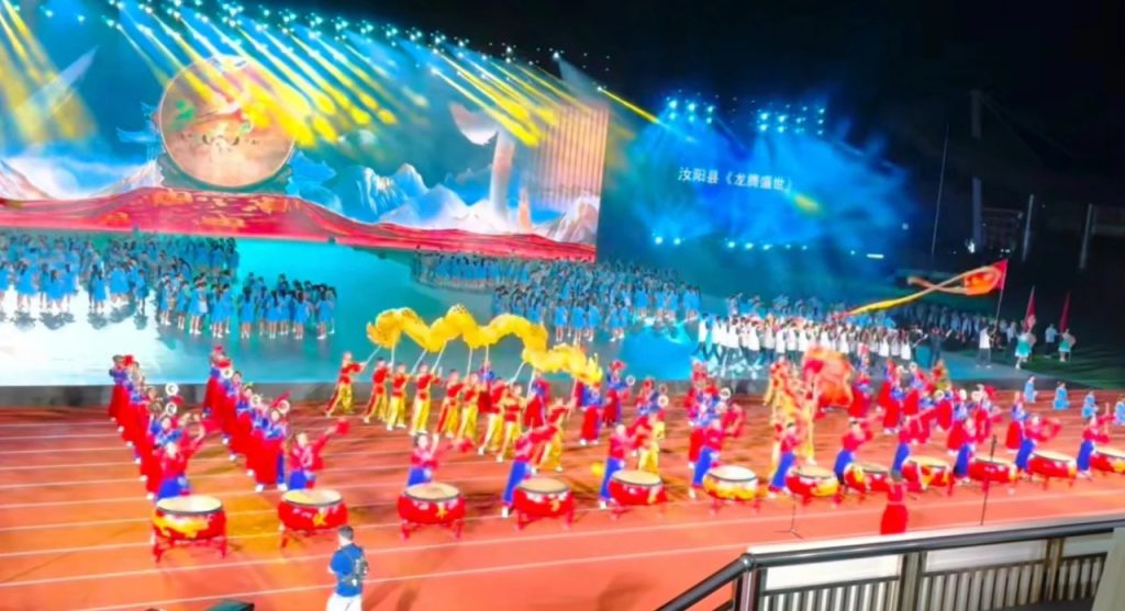 在9月13日的洛阳市第十五届运动会暨第七届全民健身大会开幕式上,汝阳县选送的《龙腾盛世》节目,以市级非遗“南街排鼓”为魂,融合传统舞龙,在洛阳市运动会开幕式上大放异彩.