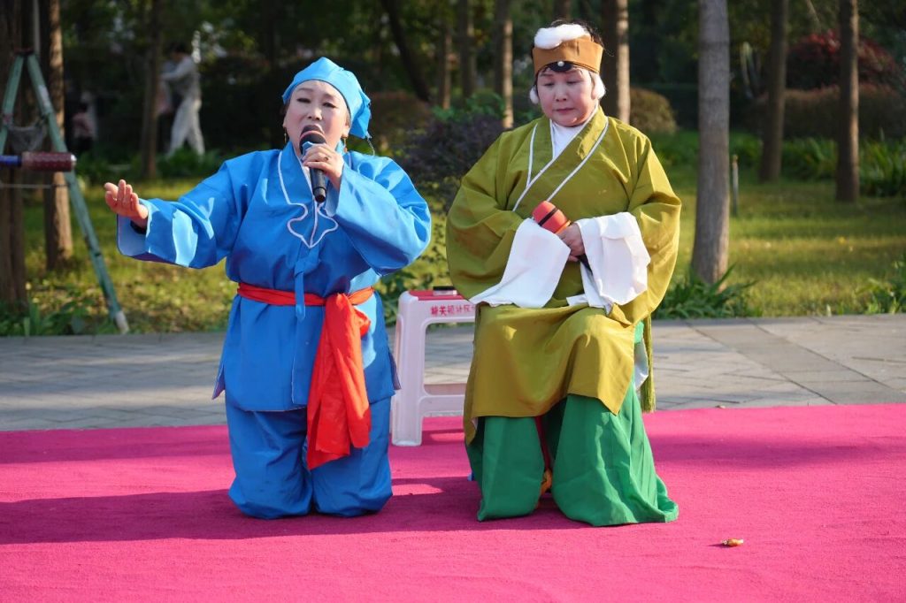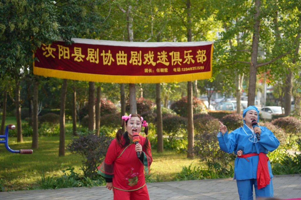 汝阳县群众曲剧戏迷自乐团队迎来十周年庆典,刘伶文化广场上,经典曲剧轮番唱响,展现十年坚守与曲韵传承。