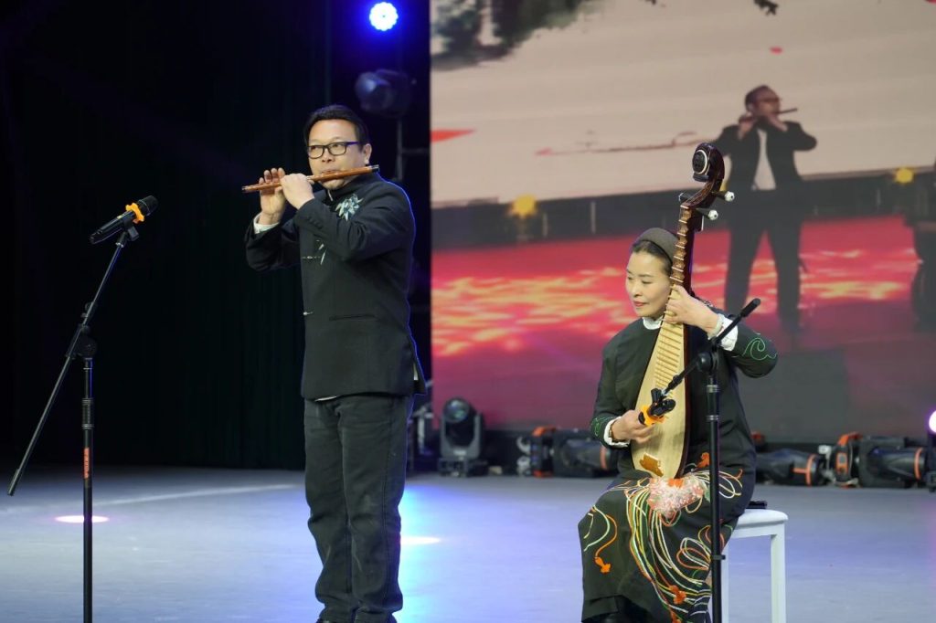 - 孟州市音乐家协会主席、国家一级演奏员耿剑光与杨燕器乐合奏《龙乡欢歌》,悠扬旋律吹出龙乡大地的激情豪迈;
