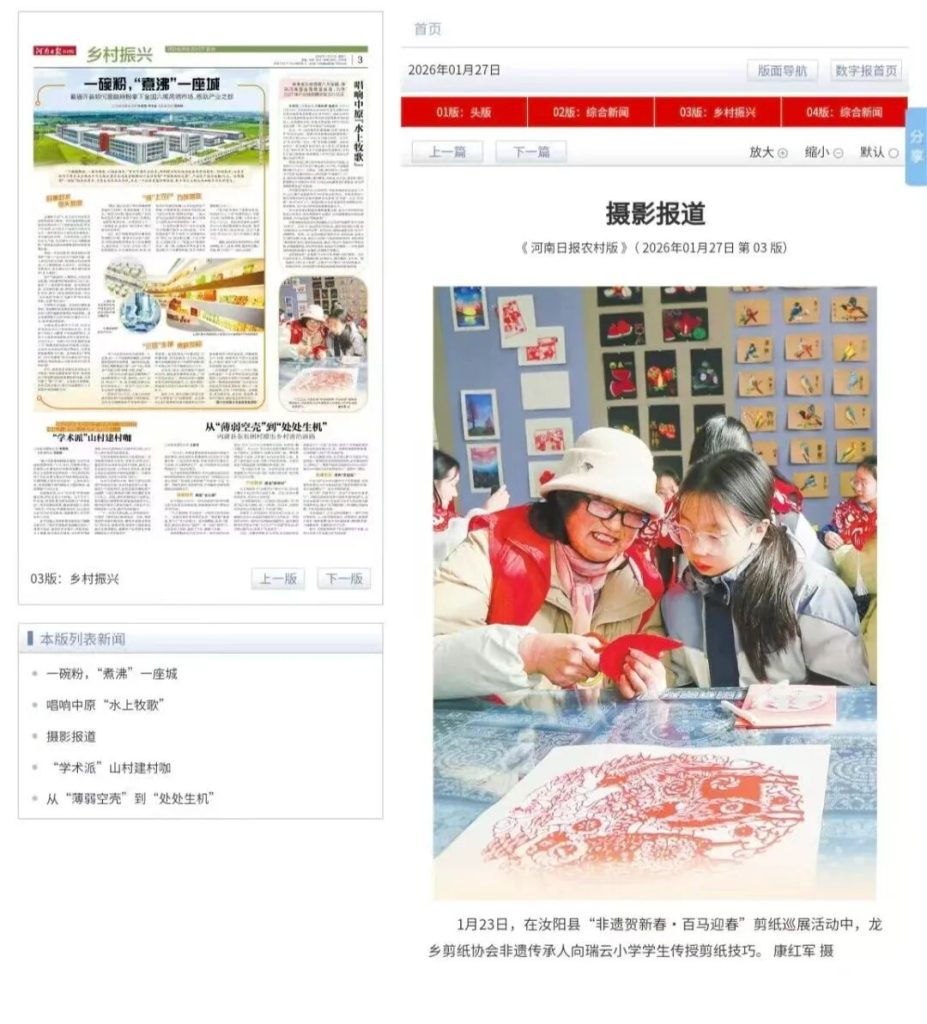 1月23日,在汝阳县“非遗贺新春·百马迎春”剪纸巡展活动中,龙乡剪纸协会非遗传承人向瑞云小学学生传授剪纸技巧。 康红军 摄https://newpaper.dahe.cn/hnrbncb/html/2026-01/27/content_444_1778230.htm